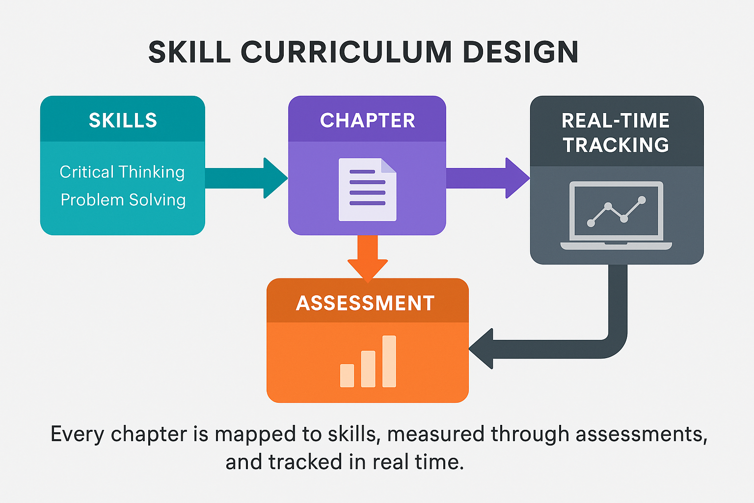 Our Skill Curriculum Design helps schools and organizations worldwide build structured, skill-focused learning pathways. Every chapter is mapped to skills, measured through assessments, and tracked in real time — ensuring alignment with global standards and future career needs.